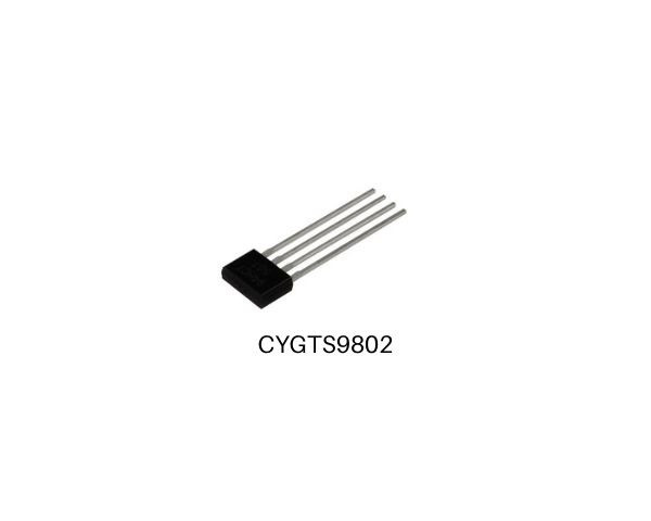 Der Sensor CYGTS9802 ist ein anspruchsvoller Hall-Effekt Zahnradsensor IC, mit einem auf dem Chip verbauten 12-Bit A/D Wandler und einer Logik, die eine digitale Abtastungs- und Halteschaltung darstellt. Ein separater 6-Bit-D/A-Wandler stellt eine feste Hysterese ein. Der Sensor hat keine Chopper-Verzögerung. Er verwendet eine einzelne Hall-Platte, die resistent gegen rotierende Ausrichtungsprobleme ist. Der Bias-Magnet kann 1000GS bis 4000Gs aufweisen. Wird das Signal abgetastet, erkennt die Logik eine Erhöhung oder Verringerung der Flussdichte. Der Ausgang wird auf BOP eingeschaltet, nachdem der magnetische Fluss den Höhepunkt erreicht und um einen Betrag gleich der Hysterese gesenkt hat. Ebenso wird der Ausgang auf BRP ausgeschaltet, nachdem der Fluss den Minimalwert erreicht und um einen Zusatzbetrag gleich der Hysterese zugenommen hat. Die komplementären-Ausgänge (OUT und OUTB) sind in diesem Sensor vorgesehen. Der Ausgang OUTB schaltet ab, nachdem der Fluss den Höhepunkt erreicht und um einen Betrag in Höhe der Hysterese gesenkt hat. Ähnlich schaltet der Ausgang OUTB ein, nachdem der Fluss seinen Minimalwert erreicht und um einen Zusatzbetrag gleich der Hysterese zugenommen hat.